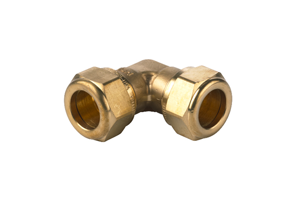 Knelkoppeling haaks (knie) 2x, messing, in verschillende (uitwendige buis)diameters: 12x12mm / 15x15mm / 22x22mm / 28x28mm