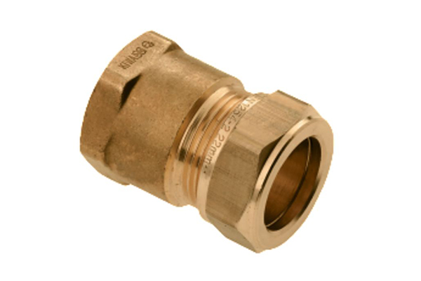 Schroefbus knel recht (overgangskoppeling), messing, conisch in verschillende aansluitmaten: 3/8″x12mm – 3/8″x15mm – 1/2”x15mm – 3/4″x22mm – 1″x28mm