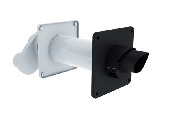Burgerhout geveldoorvoer 80/125 mm L=640 mm zwart/wit met Safe-PP rookgaspijp
