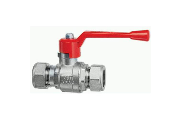 Kogelkraan met hendel knel, recht, messing, in verschillende aansluitmaten: 15x15mm / 22x22mm / 28x28mm